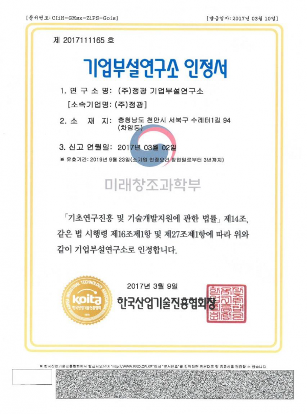 기업부설연구소 인정서