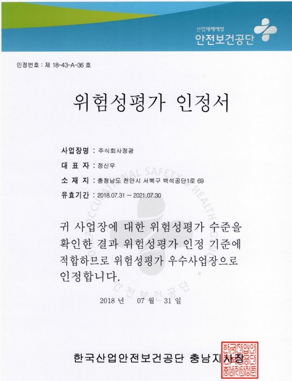 위험성평가인정서
